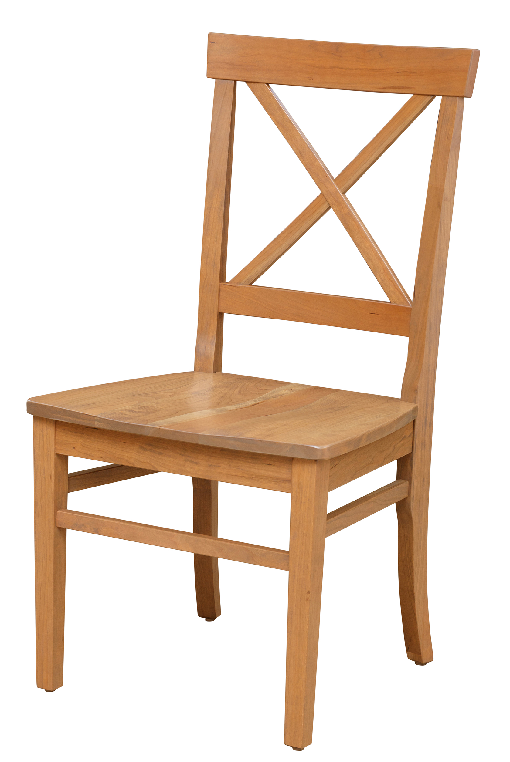 A sturdy chair with a classic X-design back. Add custom leather padding on the seat to make it even more comfortable.