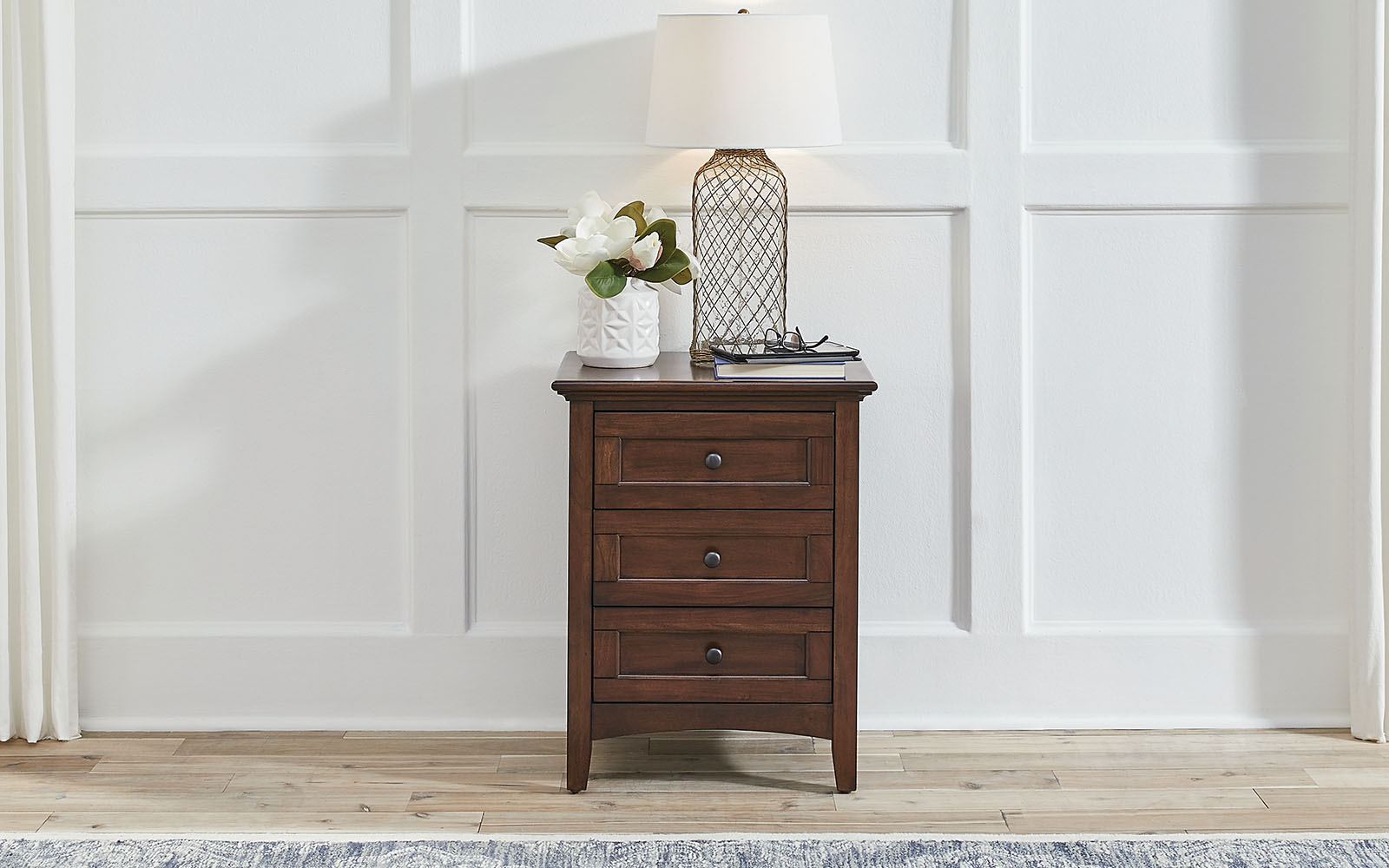 Westlake is modern in design with American Shaker influence. This transitional bedroom collection is made out of sustainable Solid Mahogany and is designed especially for those with more compact bedrooms or simply those who have the need for more storage space. Case pieces feature felt lined top drawers, full extension drawer glides, and English dovetailed drawer boxes front & back. Finished in a glowing cherry brown with dark gun-metal color hardware, this clean line solid Mahogany bedroom group is a great value for any home.