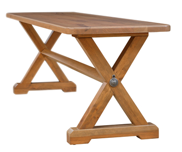 A beautiful bench with classic X-base design. Add custom leather padding on the seat to make it even more comfortable.