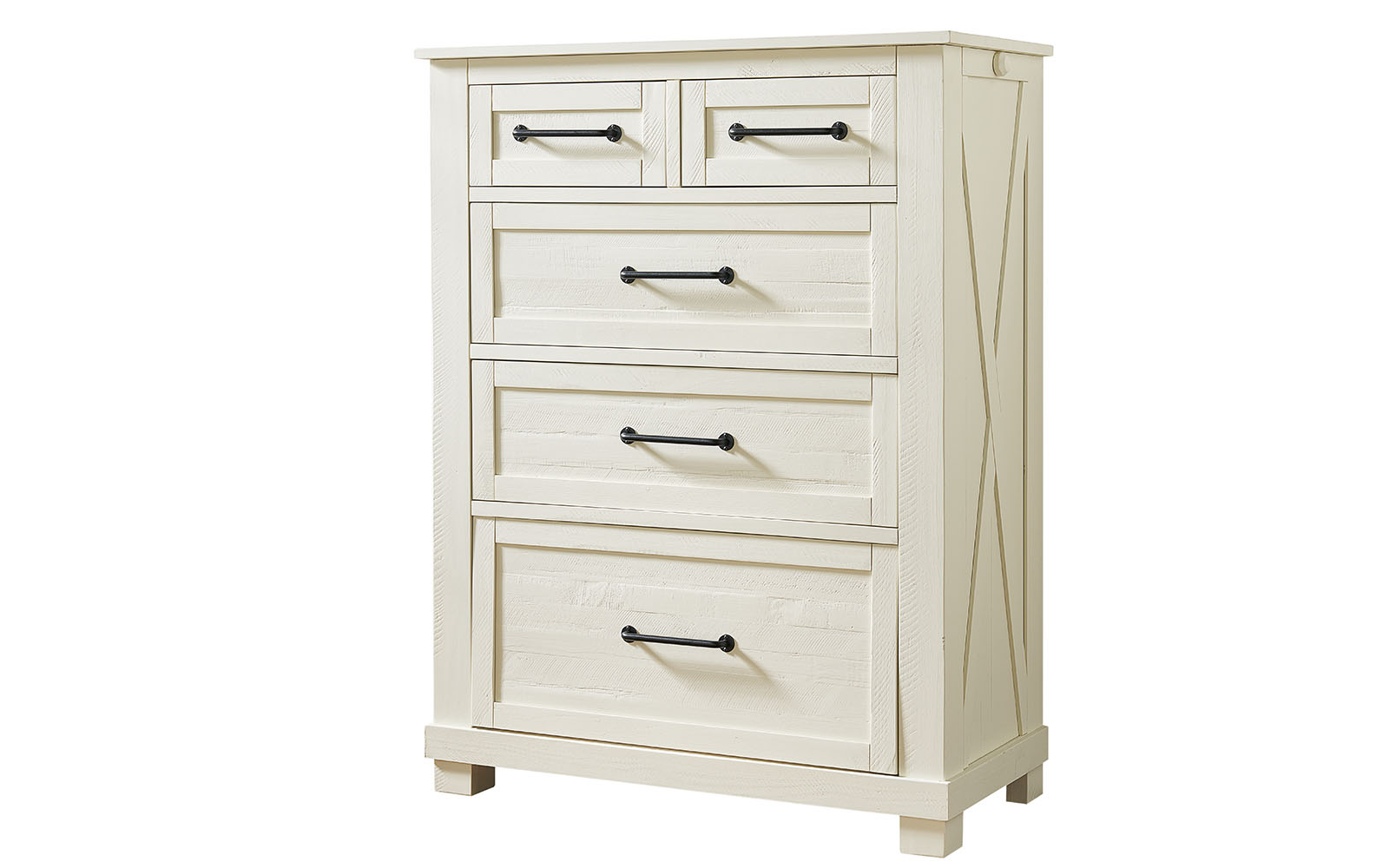Our Sun Valley Collection evokes the rustic style of early America. Stylish x-framed sliding doors are accented with industrial handles while a distressed white finish highlights the natural character of solid New Zealand pine. Each sturdy case piece provides ample storage and plenty of features.