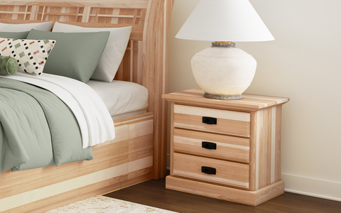 Beautiful modern Arts & Crafts fret work that transitions well into any home. The unique & natural solid Hickory wood grain shines through with mineral streaks, brown cathedral points and rich reddish brown grain patterns. Hickory is a high density wood that is extremely resilient to surface damages and is as smooth as glass with our Catalyzed Lacquer finish. This furniture is guaranteed to become tomorrow’s heirloom.