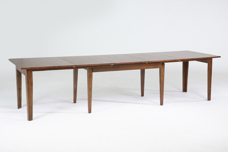 Lightly distressed, bright, two-tone collection with a country flavor. The unique function and innovation of this accordion Vers-A-Table transforms a comfortable area seating two or four up to a party of twelve!