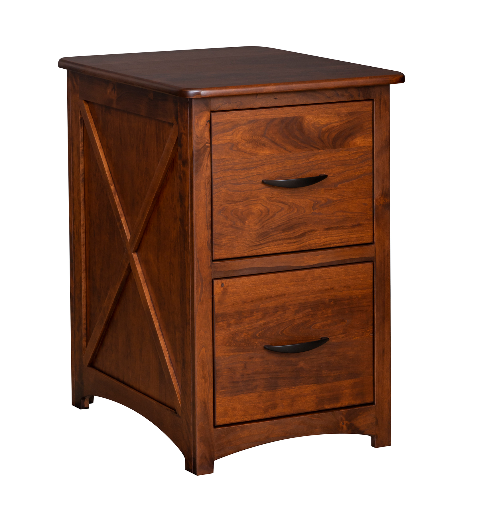 This 2-drawer filing cabinet stores both letter or legal-sized documents in attractive Crossway style. With distinctive X-paneled sides, the drawers have full-extension glides that will each support up to 100 pounds.
