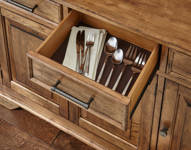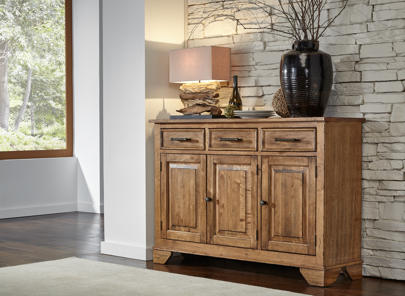 Made of solid birch, Bennett boasts a beautiful smoky quartz finish, layered multiple times for a slight glow, like topaz. Curved backs and pedestals give this dining collection a slight elegance while retaining an aura of comfort and ease. We categorize this look as an updated take on French Country.