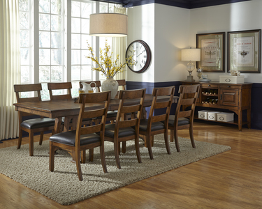 Inspired by sturdy furnishings of the great American lodges, our Ozark dining collection takes on a fresh look in Mango solids. Key elements are blocked and planked tops, as well as chamfered, solid wood structure typical of the Arts and Crafts era. Figured Mango solids with warm honey undertones are enhanced with smoky burnishing for a casual rustic look.