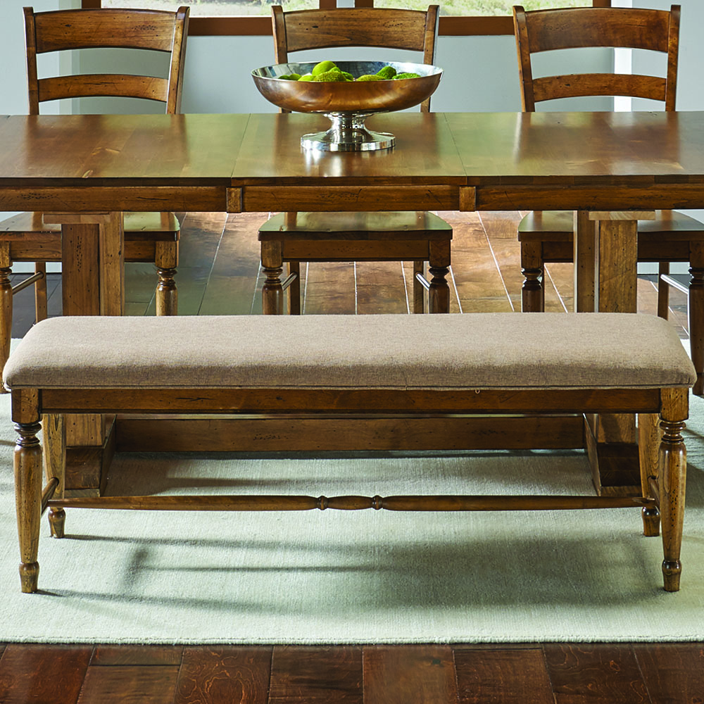 Made of solid birch, Bennett boasts a beautiful smoky quartz finish, layered multiple times for a slight glow, like topaz. Curved backs and pedestals give this dining collection a slight elegance while retaining an aura of comfort and ease. We categorize this look as an updated take on French Country.